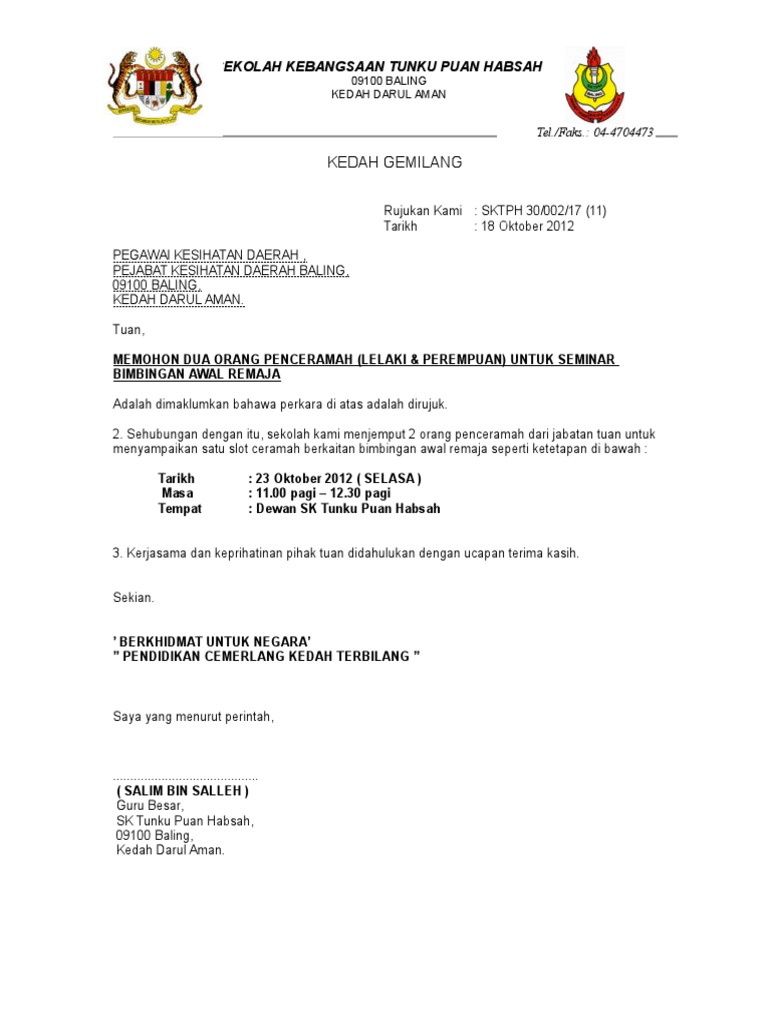 Contoh Surat Rasmi Untuk Menjemput Penceramah Contoh Qos Otosection